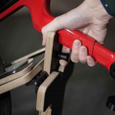 In contrast this Flip object, by British industrial designer George Laight, offers the convenience of a rack with the added benefit of portability. The bike can be stored vertically, saving space, and the entire thing can be wheeled around, making garage clean-ups and reorganizing sessions easy.